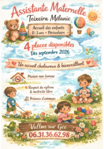 Disponibilité d’une assistante maternelle – 4 places dès septembre 2026